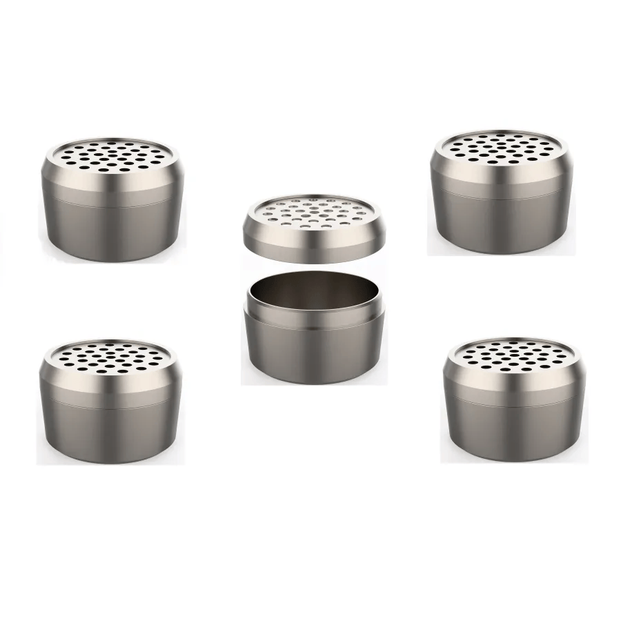 These ultra-sleek dosing capsules are precision-crafted from premium Grade 2 titanium, offering a superior upgrade over the original Storz & Bickel aluminum capsules and even outperforming common stainless steel or glass alternatives in key areas. Fully compatible with Storz & Bickel vaporizers: Mighty+, Crafty+, Venty (and others in the lineup that accept standard dosing caps). 0.2g capacity. Dimensions: 15mm wide x 10mm tall (including the secure click-on lid).